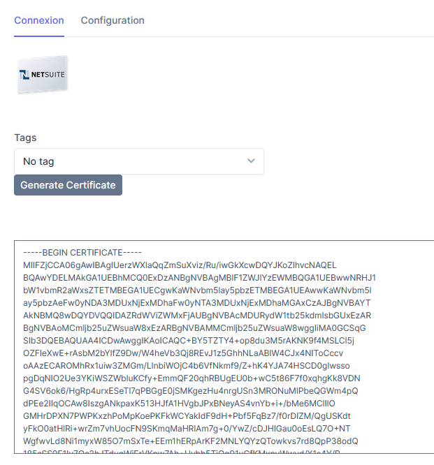- In your SYNC account, generate an RSA certificate and copy the public key.